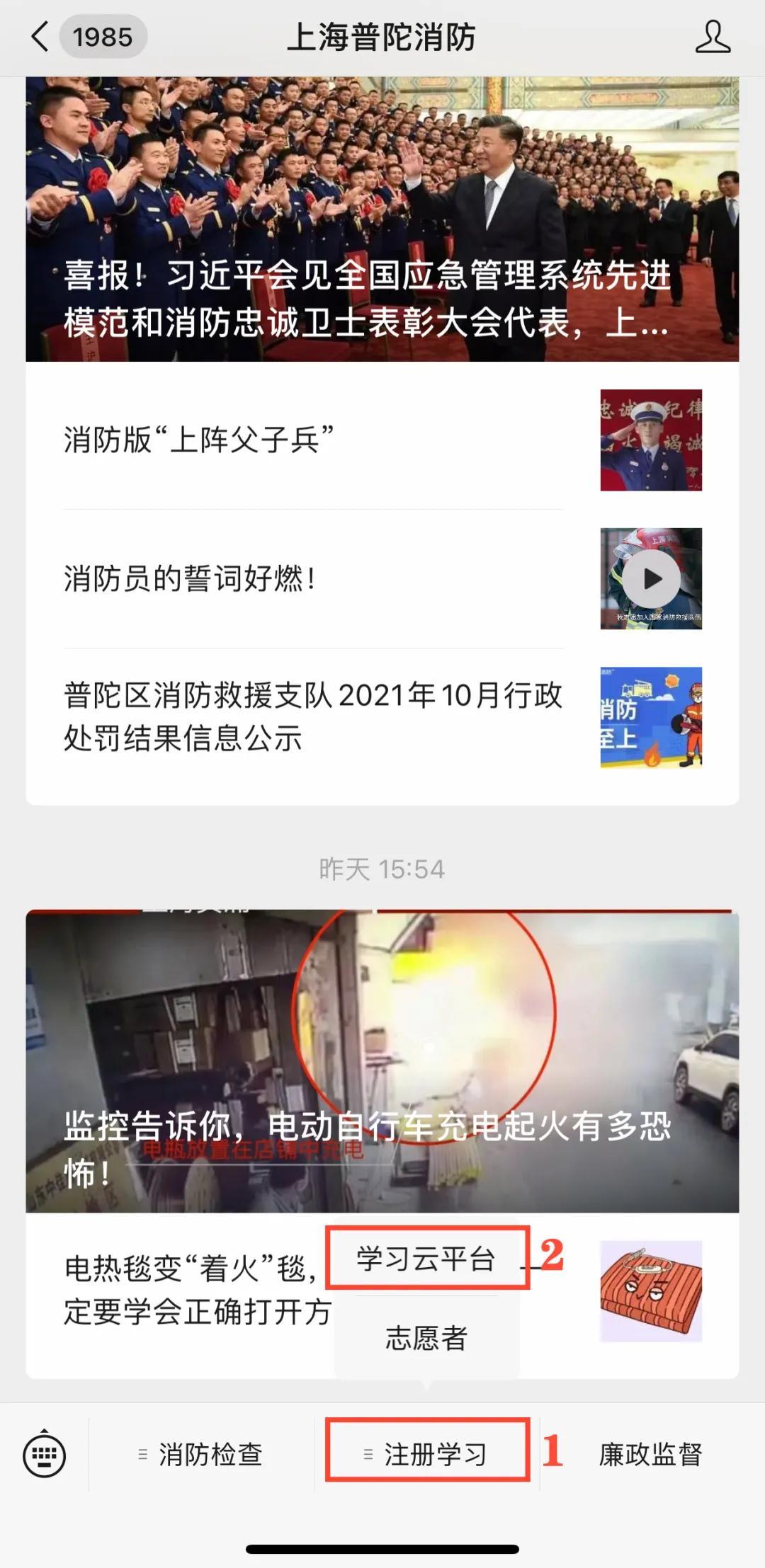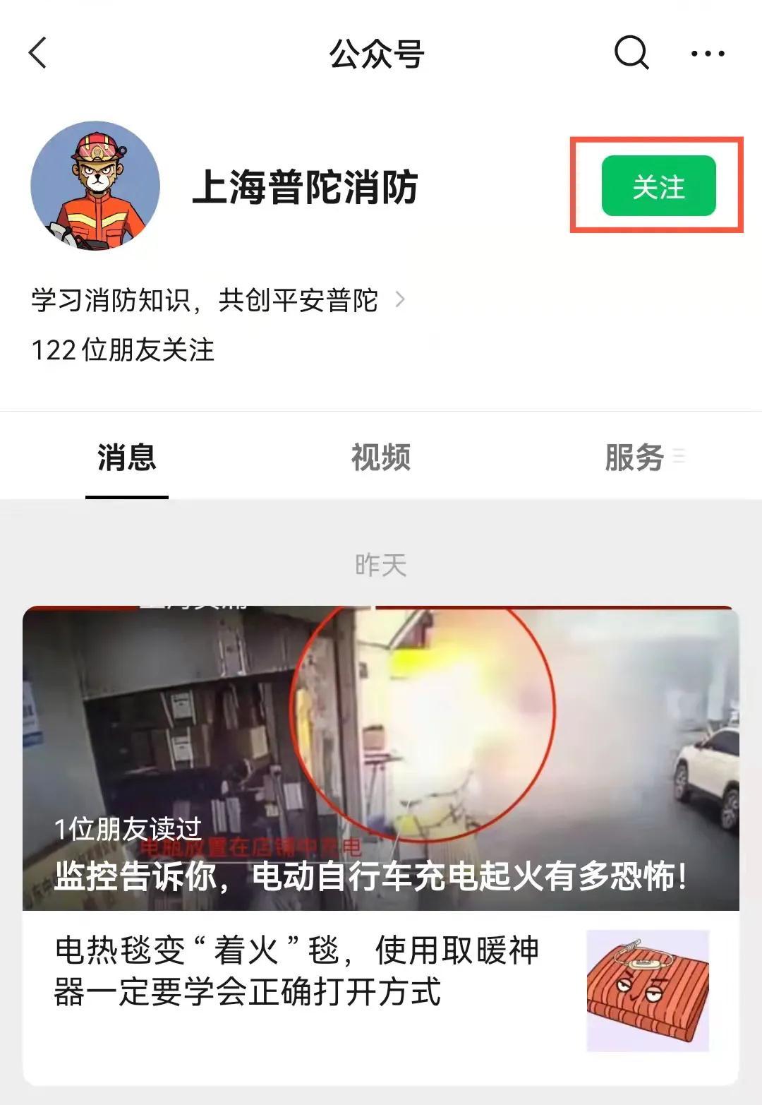 step 1:关注“上海普陀消防”微信公众号