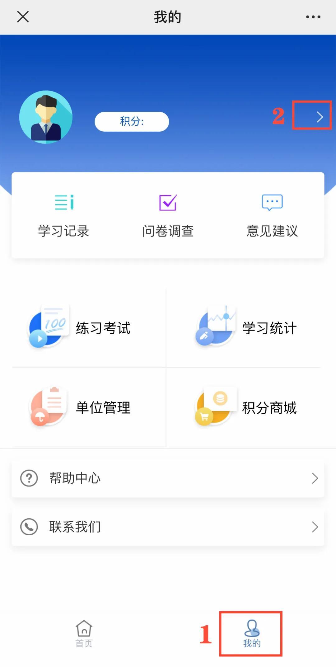 1. 点击“我的”,点击用户头像旁边的“小箭头”,填写信息