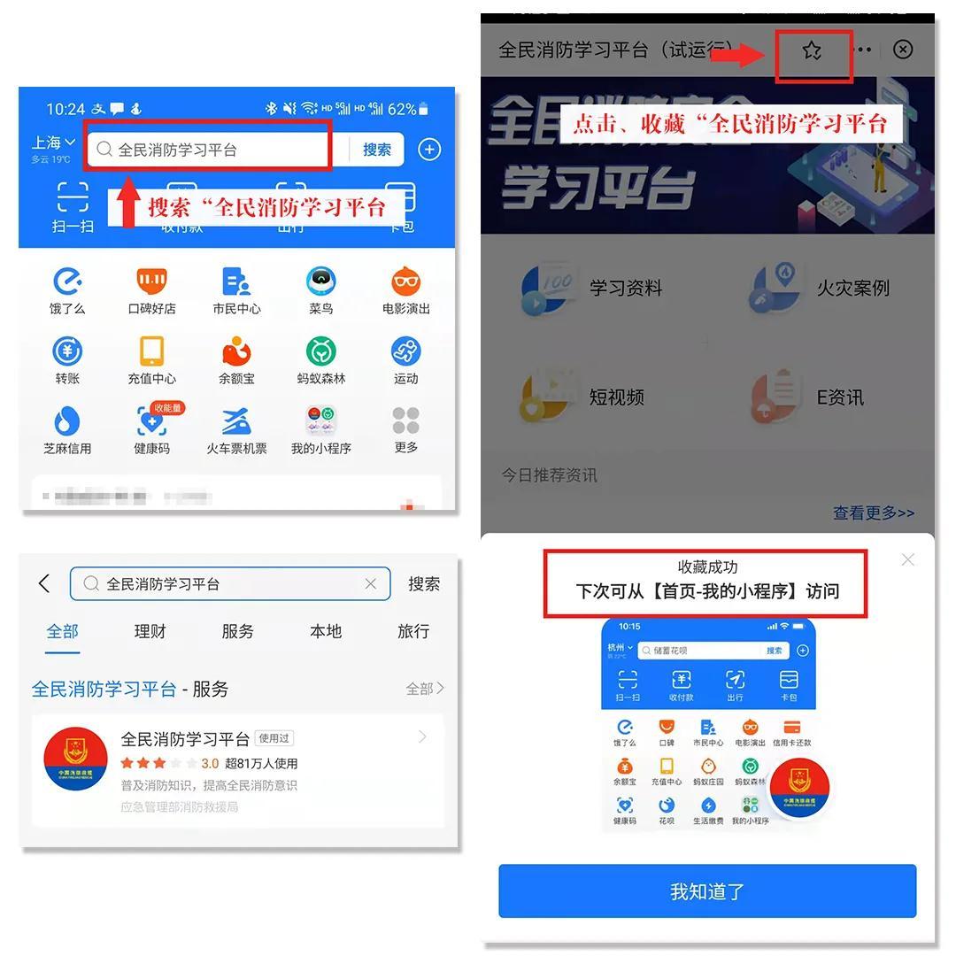 该平台由学习资料、火灾案例、短视频、e咨询、练习考试五大板块组成,公众只需在关注“中国消防”微信公众号后点击页面下方的“学习平台”按钮,便可登陆平台学习消防安全知识和参与答题竞赛。