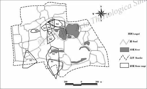 上海动物园赤腹松鼠空间分布特征(基于mcp模型)n1-n9为9只遥测定位的赤腹松鼠个体