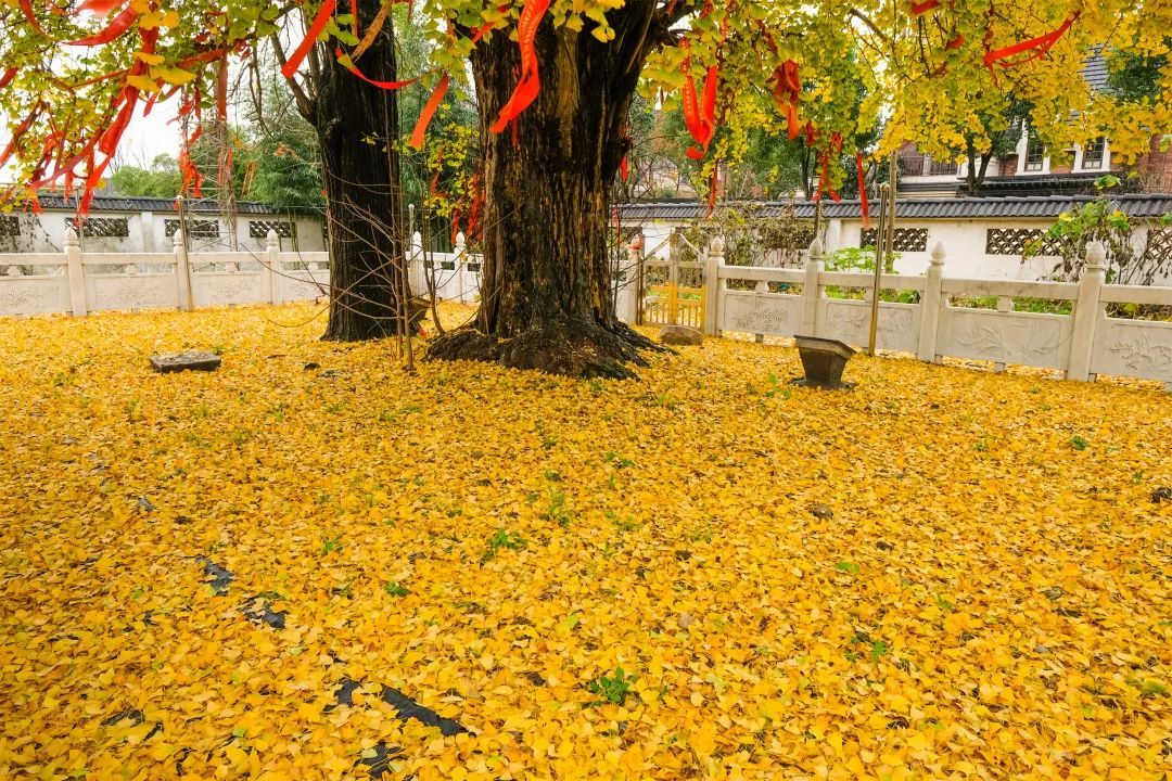 每逢深秋,满地的黄叶与古老的寺院交相映衬,瞬间多了几分古朴、悠远的味道。