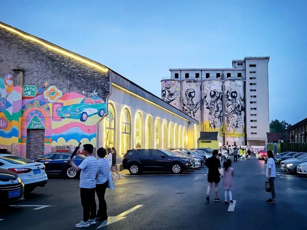 其中,一种散装粮平房仓俗称“万担仓”,是建国后的一个国外援建项目,在全国已不多见。这样的粮仓这里现存数十座,经过修旧如旧的更新改建,作为展馆、剧场为游客提供服务。除此之外,房式仓里开设了艺术家工作室,简易仓则改造成为潮流民宿。高24米、直径5.5米的八栋筒仓是云间粮仓的标志性景观。原来这里是供松江面粉厂存储原料的,现在披上了巨幅筒仓涂鸦《稻田守望者》——4位航天员行走在稻田中,手持水稻,仰望星空,蕴含的是松江大米航天育种的主题。