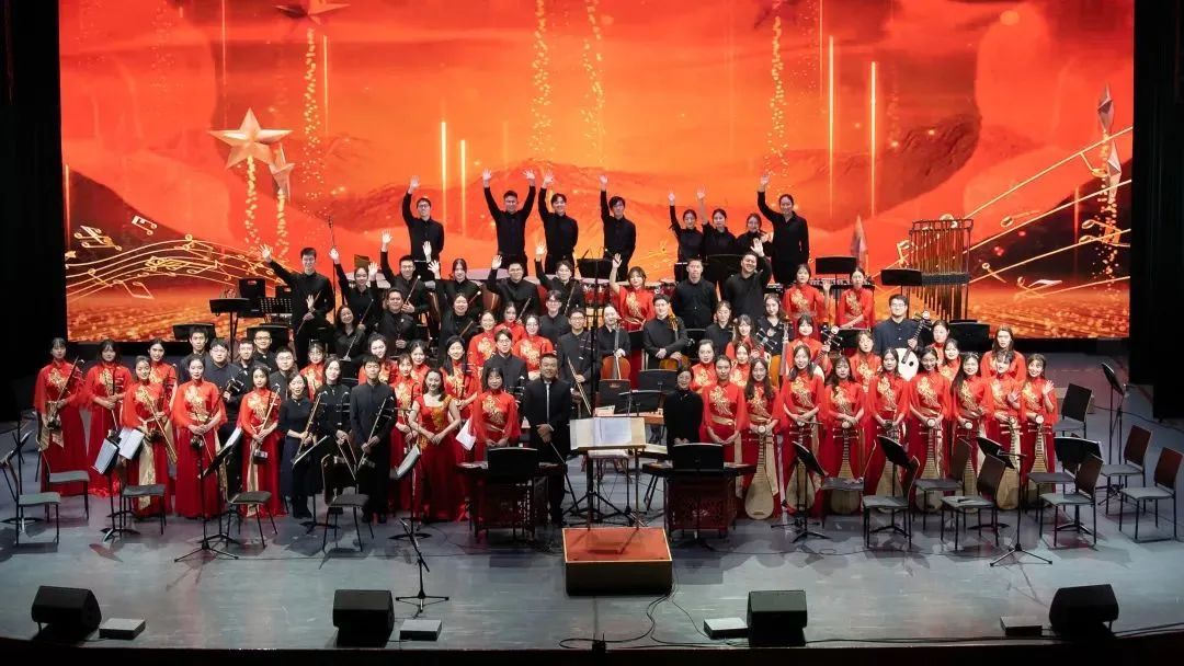 整场音乐会在民族管弦乐《我的祖国》中落下帷幕,作品采用了同名歌曲《我的祖国》与河北民间乐曲《淘金令》的音乐元素,二者一动一静、相映生辉,熟悉的旋律以及强大的气场,民乐团的精湛演绎使得整个作品极具震撼力,值得一提的是,我校学生民乐团还凭借这首作品,斩获了全国第六届大学生艺术展演器乐组一等奖的好成绩。