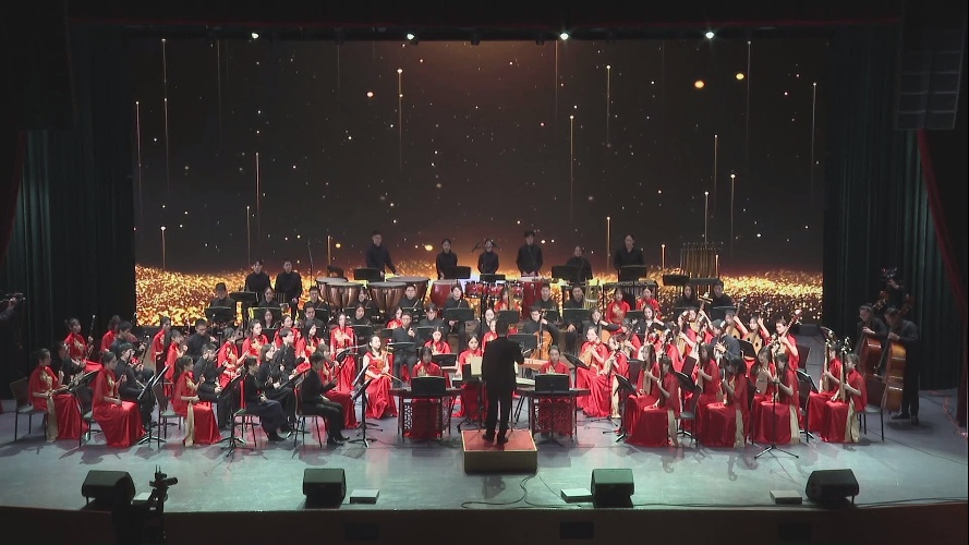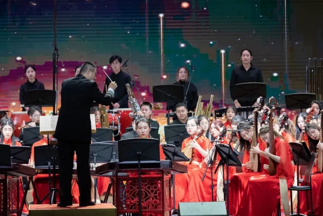 琴瑟和鸣,浓情雅乐,欢笑与感动同在,重温经典,华彩乐章,期待与梦想飞扬。为了筹备此次音乐会,民乐团师生自学期初起,进行了曲目改编、乐谱收集、声部排练、乐曲精进等工作,乐团先后邀请了业界、学界专家来校指导提升,保证了音乐会的专业呈现。本次音乐会还首次采用了现场导播录播的形式,乐团的同学们既是演员也是幕后,为了达到最佳艺术效果,乐团搭建了以学生骨干为核心的项目团队,参与了音乐会的演出策划、节目编排和团队组织等全过程。本次音乐会不仅是对民乐团本年度学习成果的检验,同时也是学校对艺术实践形式的一次新探索。