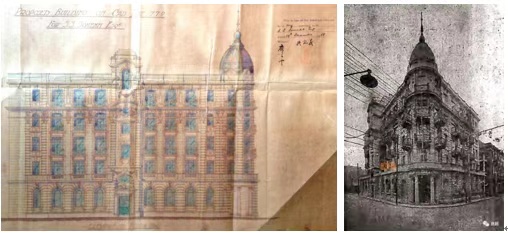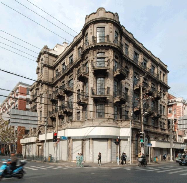 建筑主入口位于南立面,上方的纵向楼梯间以及转角顶部的塔楼穹顶处理,在规律中增加了变化,使得立面变得更为生动活跃。大楼的工艺与选材也十分考究,建筑外墙饰面采用近代上海典型的汰石子工艺(即水刷石,shanghai plaster)、水平划格仿石,外窗采用进口的实腹钢窗,入口门为实木门。室内有精美的开敞式铁栅电梯和水磨石饰面大楼梯。