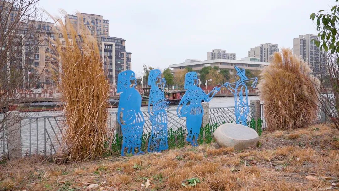 在青浦环城水系的淀浦河东段两岸,沿河矗立着一座座雕塑,这些雕像或坐或立,姿态各异。从各个角度反映了青浦的历史、文化、民俗。徜徉期间仿佛跨入了时间长河,使人们对青浦悠久灿烂的历史文化由衷地生出自豪感。
