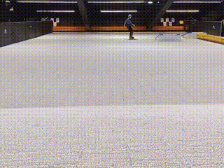 气垫大跳台的俯冲区、起跳区由旱雪毯组成,deck(顶端平台区)、knuckle(平台区到落地区之间的圆弧过渡区)和landing(落地区或着陆坡)由气垫组成,垂直落差达到6米,最远飞行距离达到3.5米。