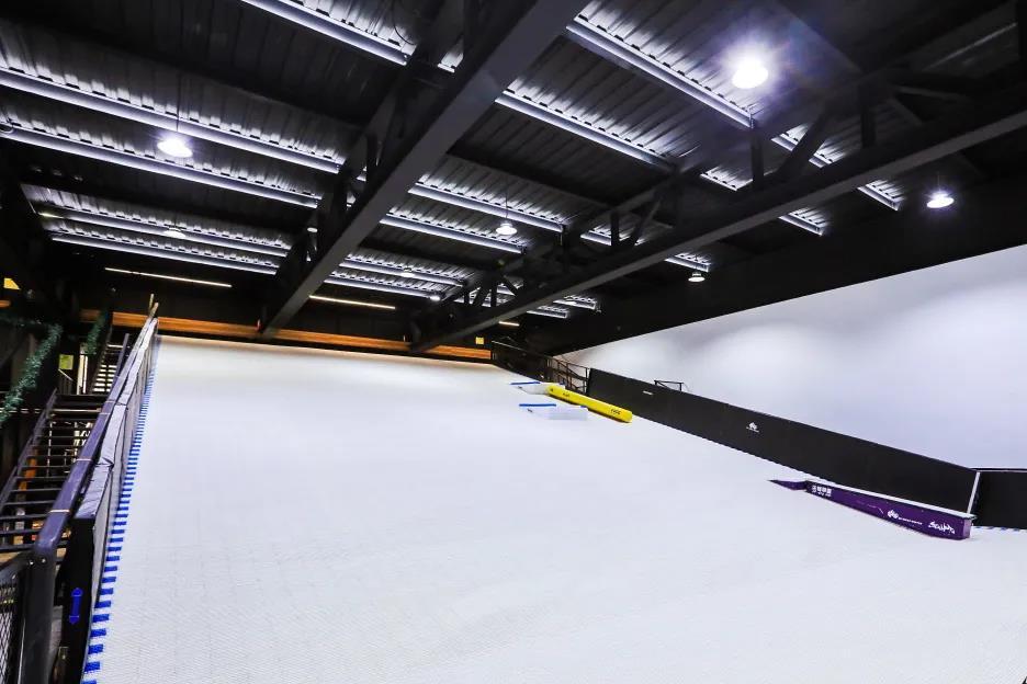 上海s.h.o.w滑雪场是华东地区首家旱雪滑雪场,也是集合模拟机、旱雪公园跳台的室内综合滑雪场馆,占地面积1000多平方米。场馆内设有滑雪模拟机、气垫大跳台、初中级滑行道、公园道具等设施,可以让滑雪爱好者自由畅滑,体验在雪原上飞驰的感觉。