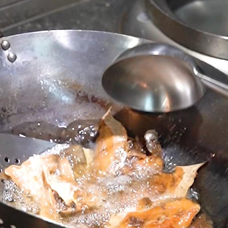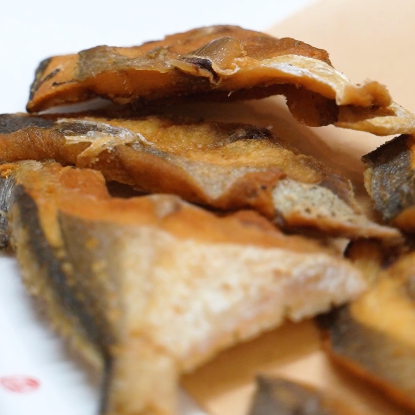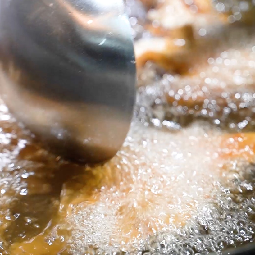 5. 鲳鱼厚片炸至金黄色,就可以捞出;