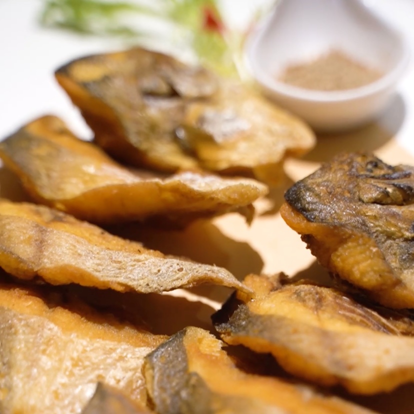 炸好的鲳鱼香气四溢、颜色金黄