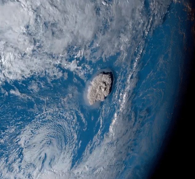 北京时间1月15日中午12点10分前后,在南太平洋岛国汤加洪阿哈阿帕伊岛附近发生了一次猛烈的普林尼型火山喷发,大量气体裹挟烟尘形成庞大蘑菇云,在倏忽之间穿透对流层,势头压过了在此处活动的热带气旋“科迪”。据weathermodels网站估算,喷发高度至少25公里。气象卫星捕捉到了此次火山喷发,即使在全球云图上,这惊心动魄的场面也清晰可见。在最激烈的喷发之后,火山灰烟云没有沿着对流层西风带自西向东飘,而是反其道而行之,向西边的澳大利亚飘去。这说明,火山灰已进入平流层。