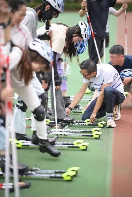 今年,在区教育局和区体育局的推动下,风华中学也将越野滑雪(滑轮)项目定为体育专项课程之一,高一、高二年级近百名学生报名参加。 其中,静安区滑雪协会提供了专业的教练资源及运动装备,为该校师生开展了为期一个月的推广普及和培训,助力学校推动“冰雪运动课程化、冰雪训练体系化”。