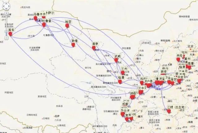 兰州、武威、酒泉、敦煌、哈密、吐鲁番、吉木萨尔、库车……
