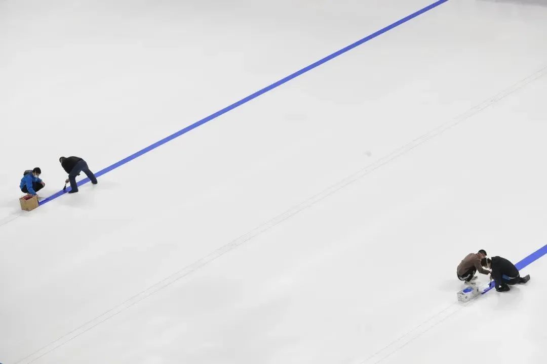 对于冰壶这种对场地要求最为苛刻的项目,也需要专业的制冰师来完成。27岁的张芷源作为中方制冰团队的一员服务北京冬奥会冰壶赛场,在“冰立方”中“点水成冰”。冰壶比赛的场地需要制冰师在水泥地面上人工制作而成。先均匀浇出高硬度的初冰层,再刷颜料让冰场呈现纯白色,接着用红蓝等色的颜料画出大本营,“冰壶赛道对于点位精准度要求很高,踏板、底线、前掷线、中线等所有线都绝对不能有偏差,否则在比赛过程中就会出现运动员和裁判员判断失误的事情,是个很精细的工作。”一切完成后再给赛道“补水”,每补一层需要间隔三至四小时,完全补好需要两至三天,最终形成绝对平整、没有气泡和杂质的上层冰面。