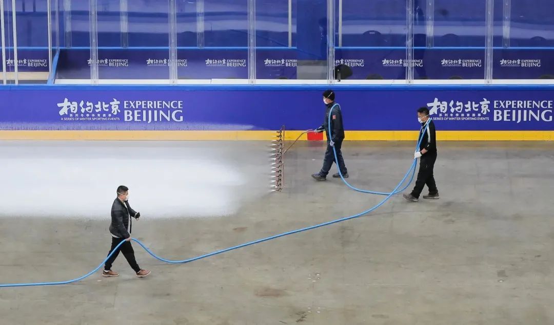 除了制冰师的匠心,制冰工作还有黑科技的加持。相比于传统的建冷式冰场,本届冬奥会还首次采用了清洁、低碳的二氧化碳跨临界直冷制冰技术,能效提升20%以上,机组消耗的能源仅为传统制冷系统的1/3至1/5。对有冰面转换要求的赛馆来说,二氧化碳跨临界直冷制冰技术可以精准控制冰温和软硬度,满足不同比赛项目对冰面的各个要求。