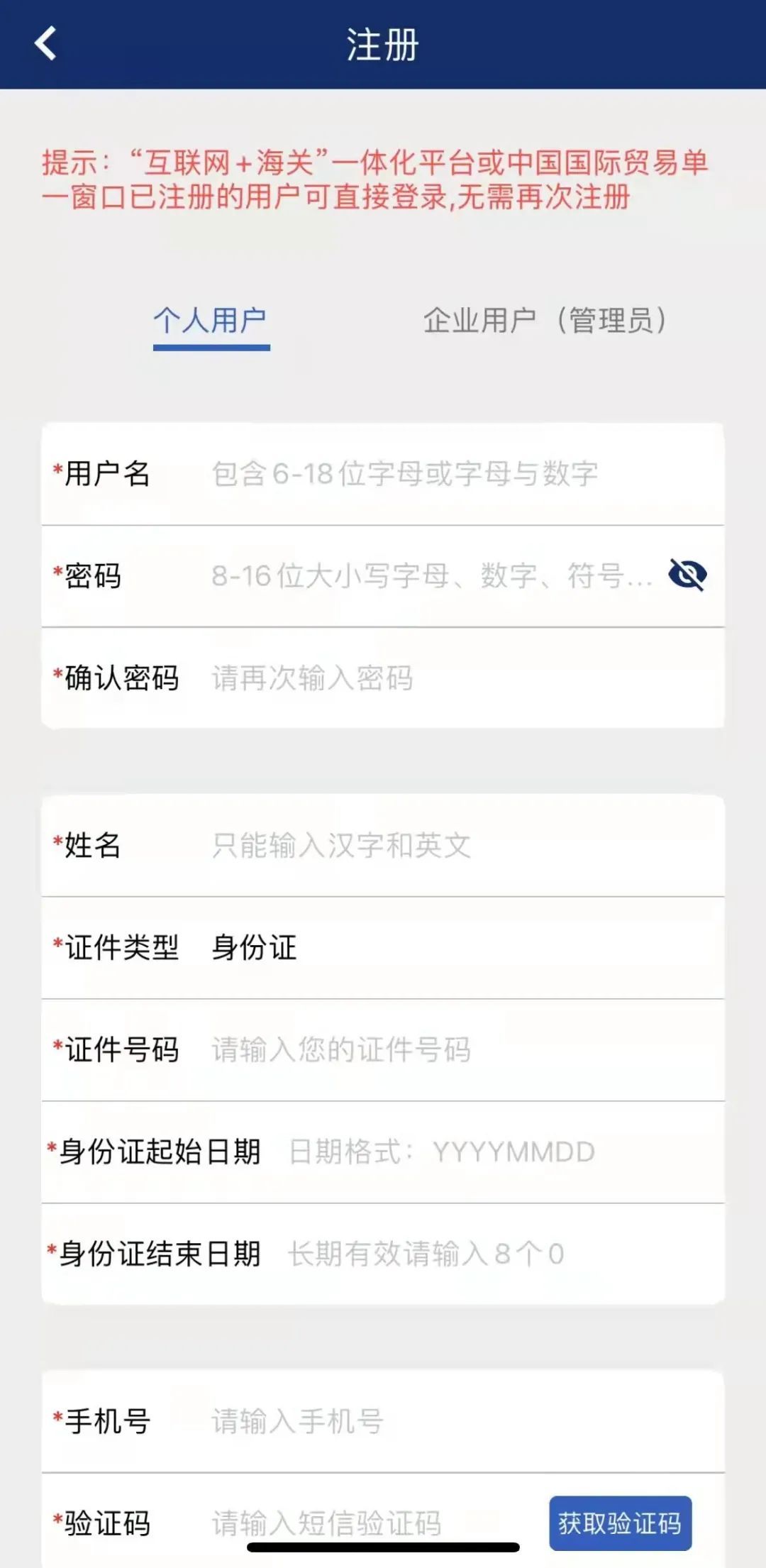 填写注册信息。