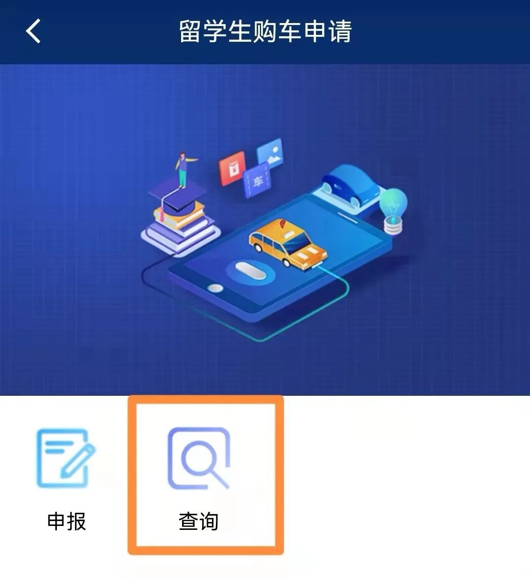 点击“留学人员购买免税国产汽车”。
