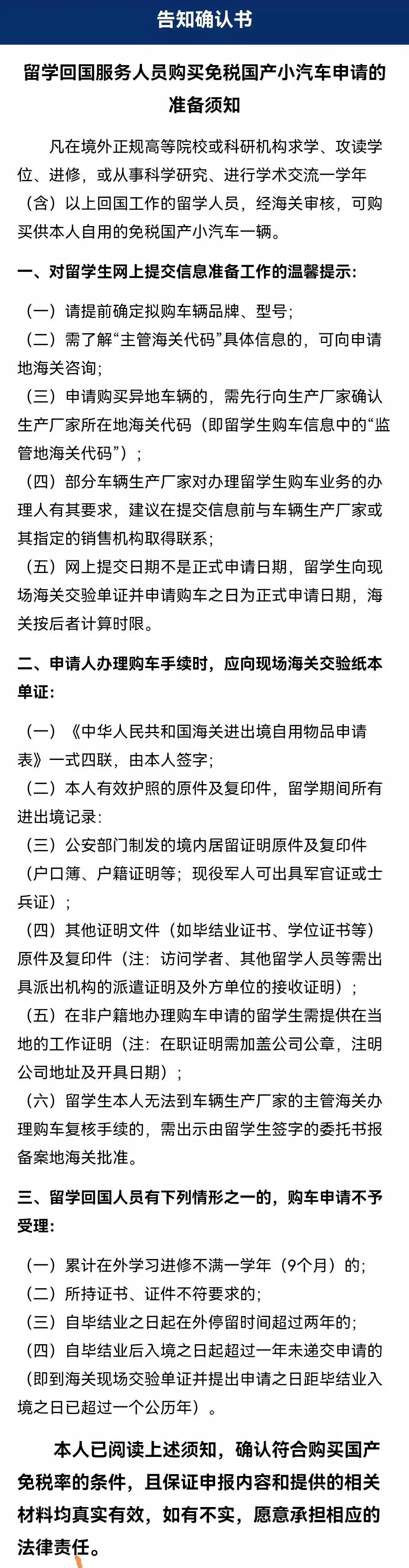 “掌上海关”app个人用户可申报留学回国人员购买免税国产汽车业务啦!