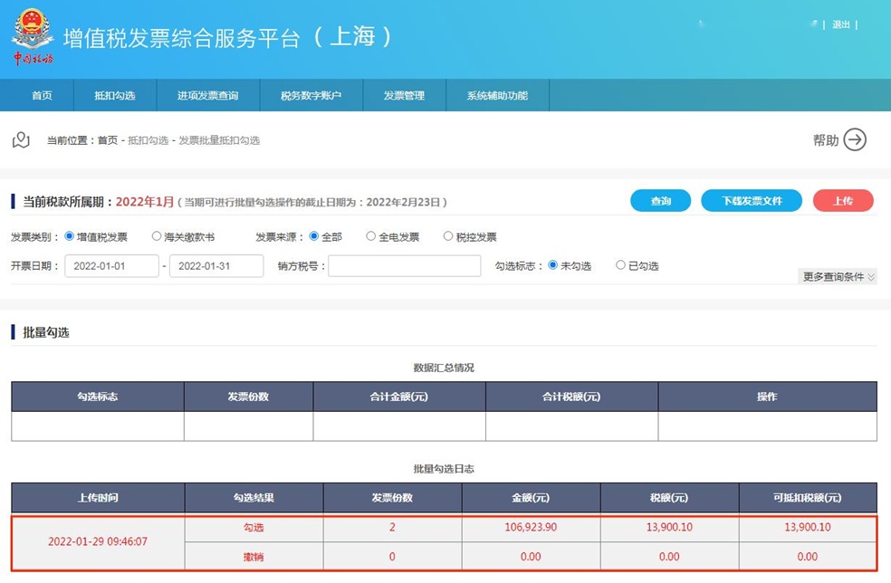 另外,批量勾选还可以通过下载增值税发票文件,手动修改后再进行上传来实现哦~