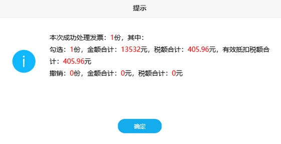 (4)确认信息无误点击“确定”按钮,保存修改,即可实现发票的撤销勾选。