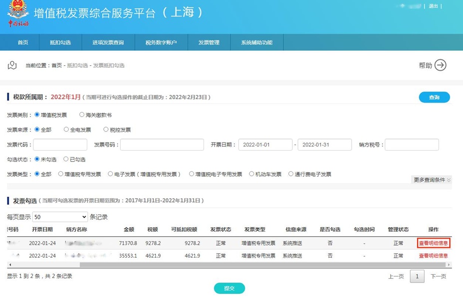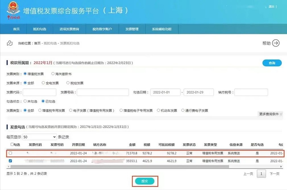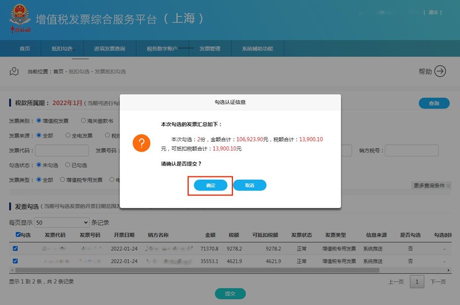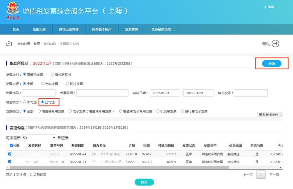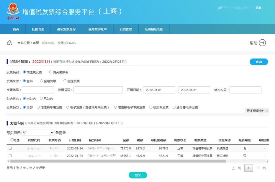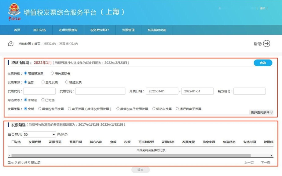 一、发票抵扣勾选