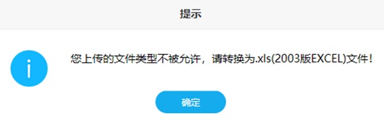 如果上传的文件类型不正确,系统会出现如下提示: