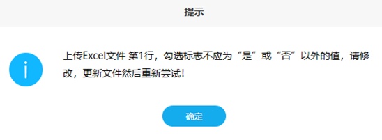 如果上传数据不符合校验格式(如勾选标志不合法),系统会出现如下提示: