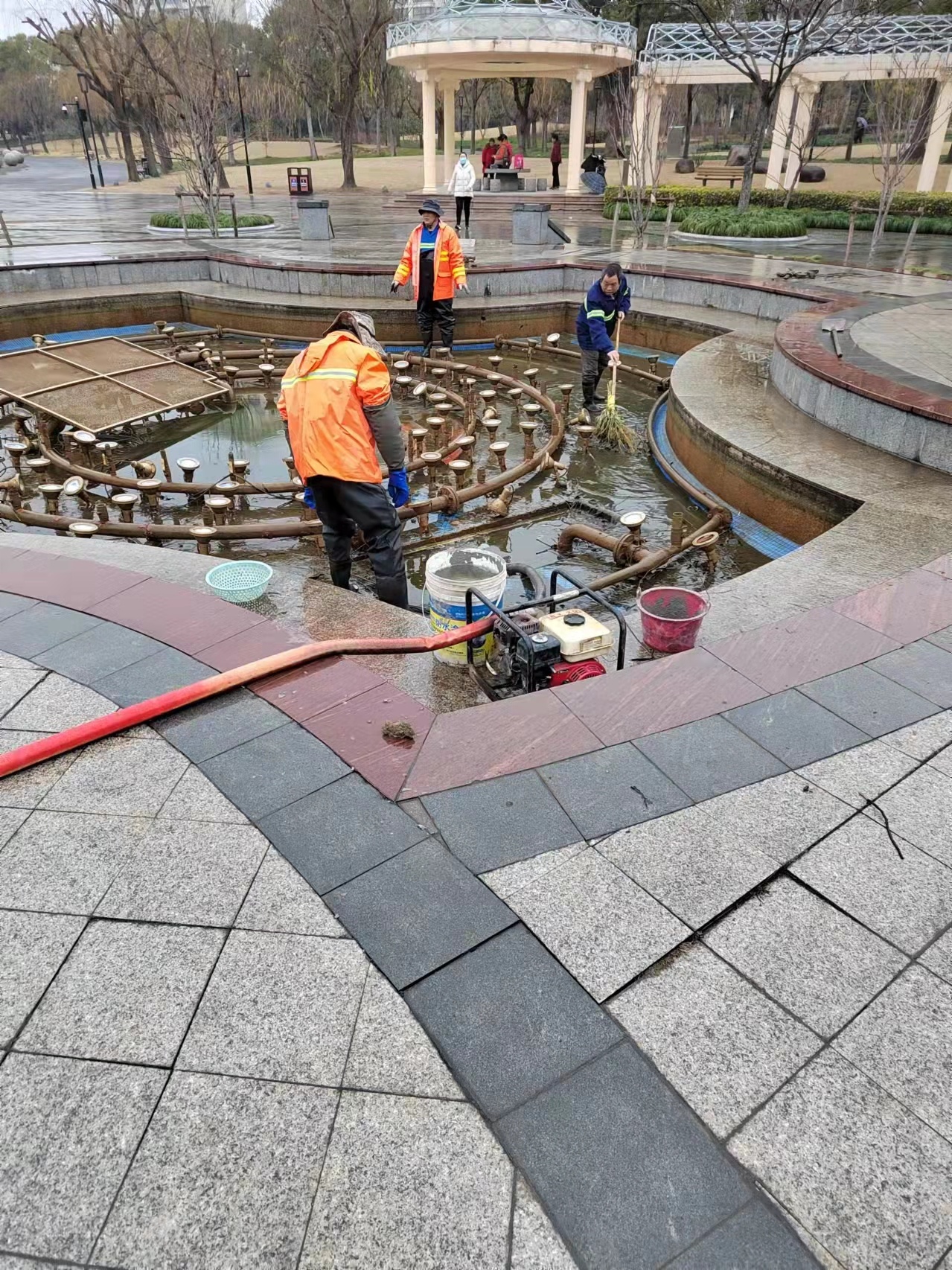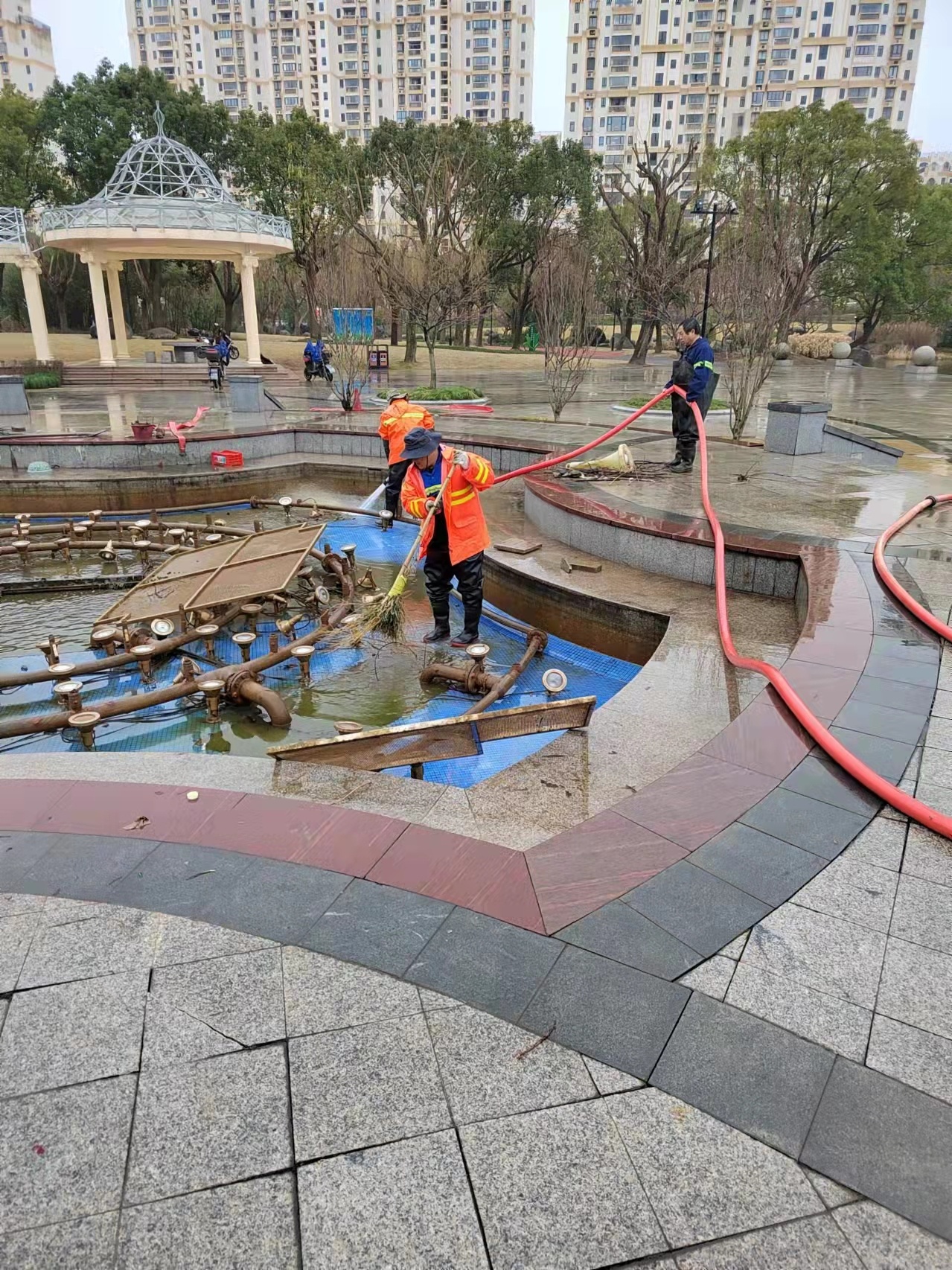 杨肖斌表示,在接到居民反映的问题之后,养护公司第一时间着手水池的清洁换水工作,“2月11号,我们组织6名作业人员对景观湖内漂浮物实施打捞,用水泵将水池脏水全部抽出,清理打扫池底,最后换水。”此外,杨肖斌透露,尽管清理效果明显,但想要保持,日常管理尤为重要,“后续我们会加强人员的巡回保洁作业频率,每周清洁一次,同时争取尽快修复滤水系统。”根据实际情况,养护单位也将做好每季度的水池全面换水工作。