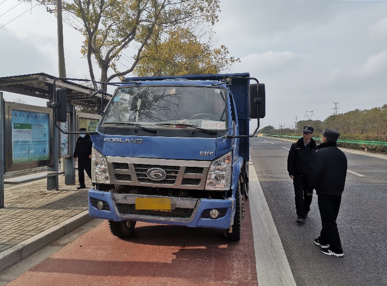 近日,崇明区三星城管中队执法人员在辖区各路段开展巡查和固守过程中,发现一辆正在行驶的运输车辆车容不洁,影响道路环境。执法人员立即将运输车拦停,展开调查。