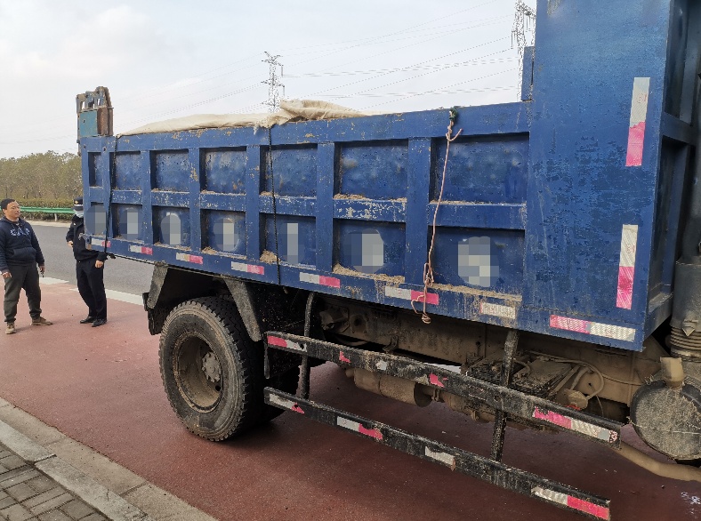 一辆重型自卸货车在运输砂石过程中未采取覆盖措施,导致运输时砂石裸露在外。崇明区新海城管中队在巡查中发现这个问题,立即要求车辆停车检查,并依法开具法律文书。车辆单位负责人到中队配合调查,执法队员要求其加强驾驶员车辆运输相关法规教育,并根据《上海市市容环境卫生管理条例》第二十七条第二款的规定,依法作出行政处罚。