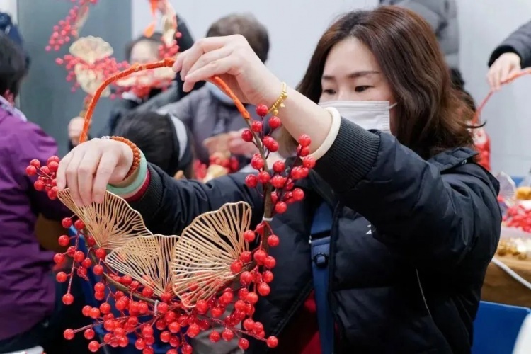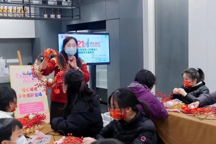 近日,在金杨社区新春花环工作坊活动中,20组预约家庭在老师指导下,大人孩子开动脑筋,制作出一件件独一无二的迎春花环。
