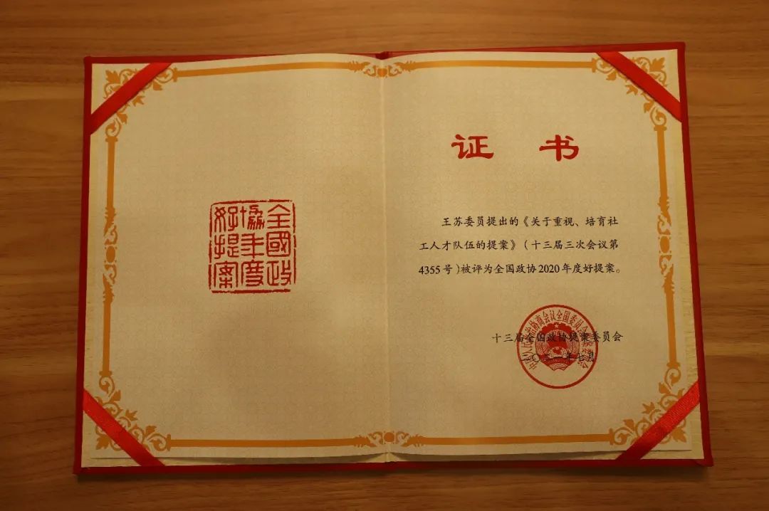 《关于重视、培育社工人才队伍的提案》获评“全国政协2020年度好提案”