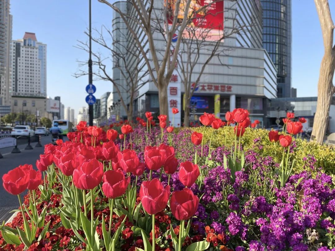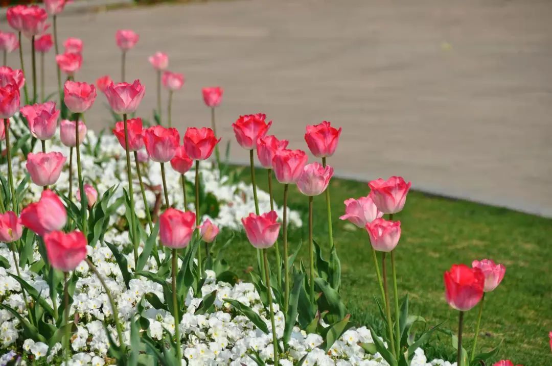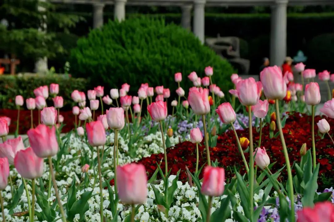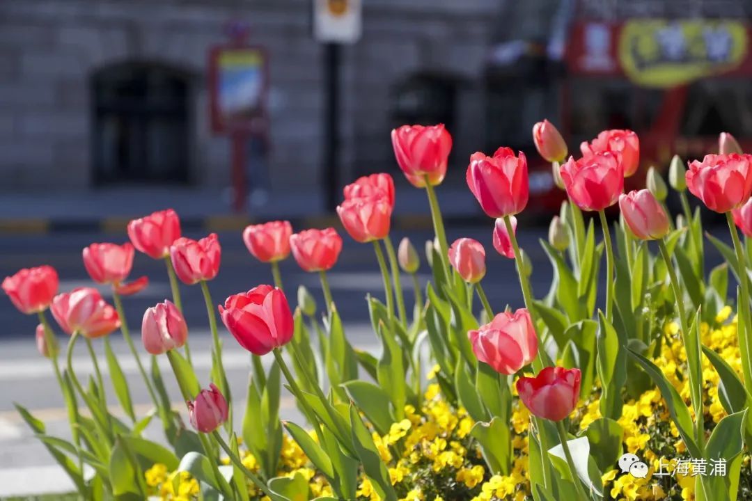 郁金香主要花色由红、粉、橙、黄、白、杂色等色系,除了常见的纯色系,一些双色的郁金香都属于稀有品种。而外滩沿线种植的郁金香多达15个品种,沿途花坛、花箱共计使用了7万株郁金香。