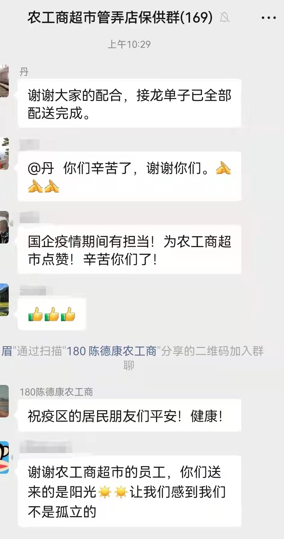 心系社区、愿意出力的不止农工商,辖区内企业闻讯后都主动与孔源联系,想做些什么。另一边,“华润万家光新店保供群”早已掌握了居民的需求清单,一切都平稳而有序。