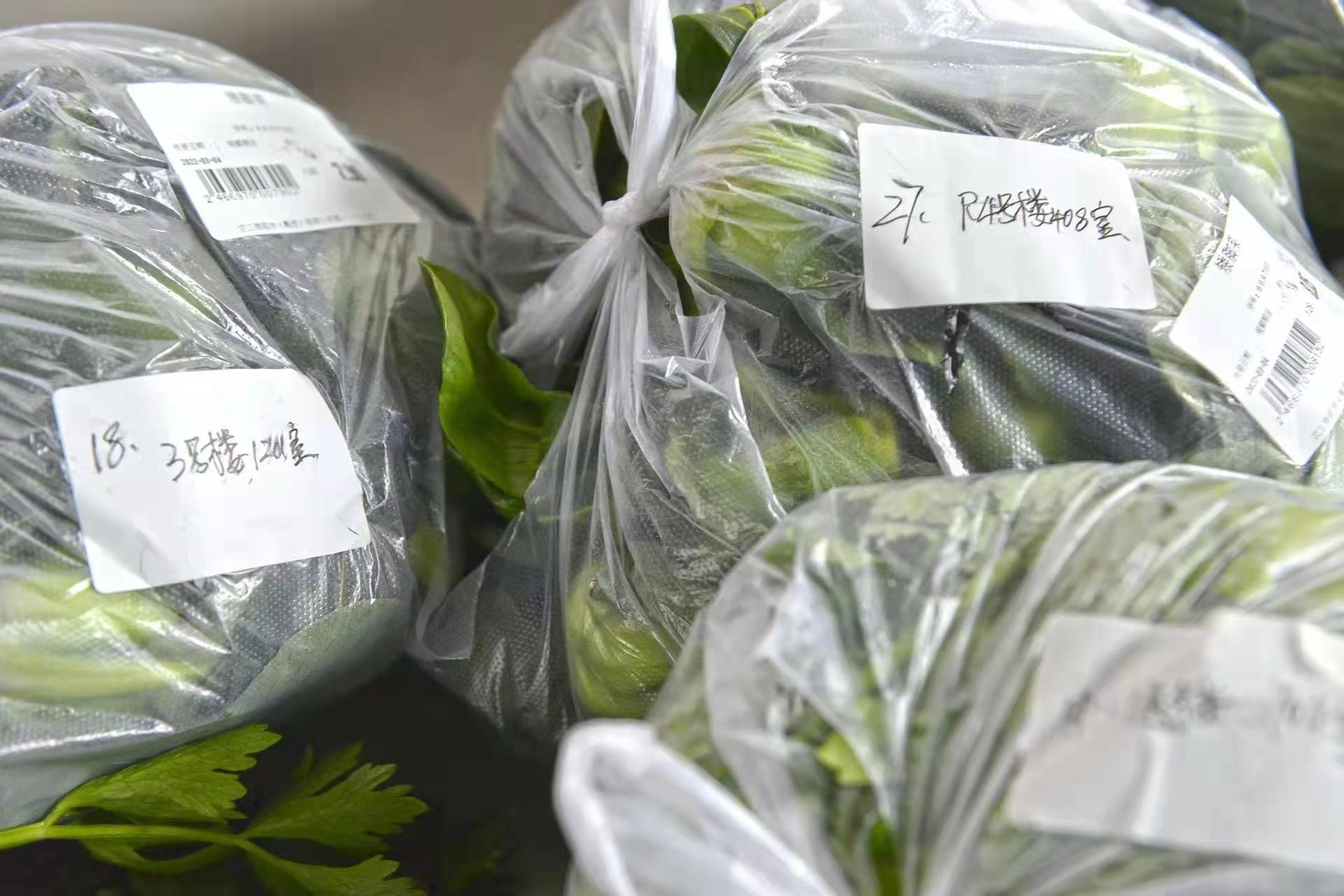 农工商超市按居民所列清单,将蔬菜一一打包