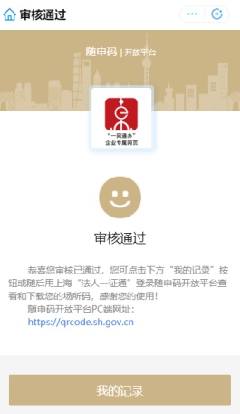 3、单位信息核验通过后,用户点击“我的记录”,可以查看本人申请的“场所码”记录和本单位的“场所码”申请记录,可选择下载。