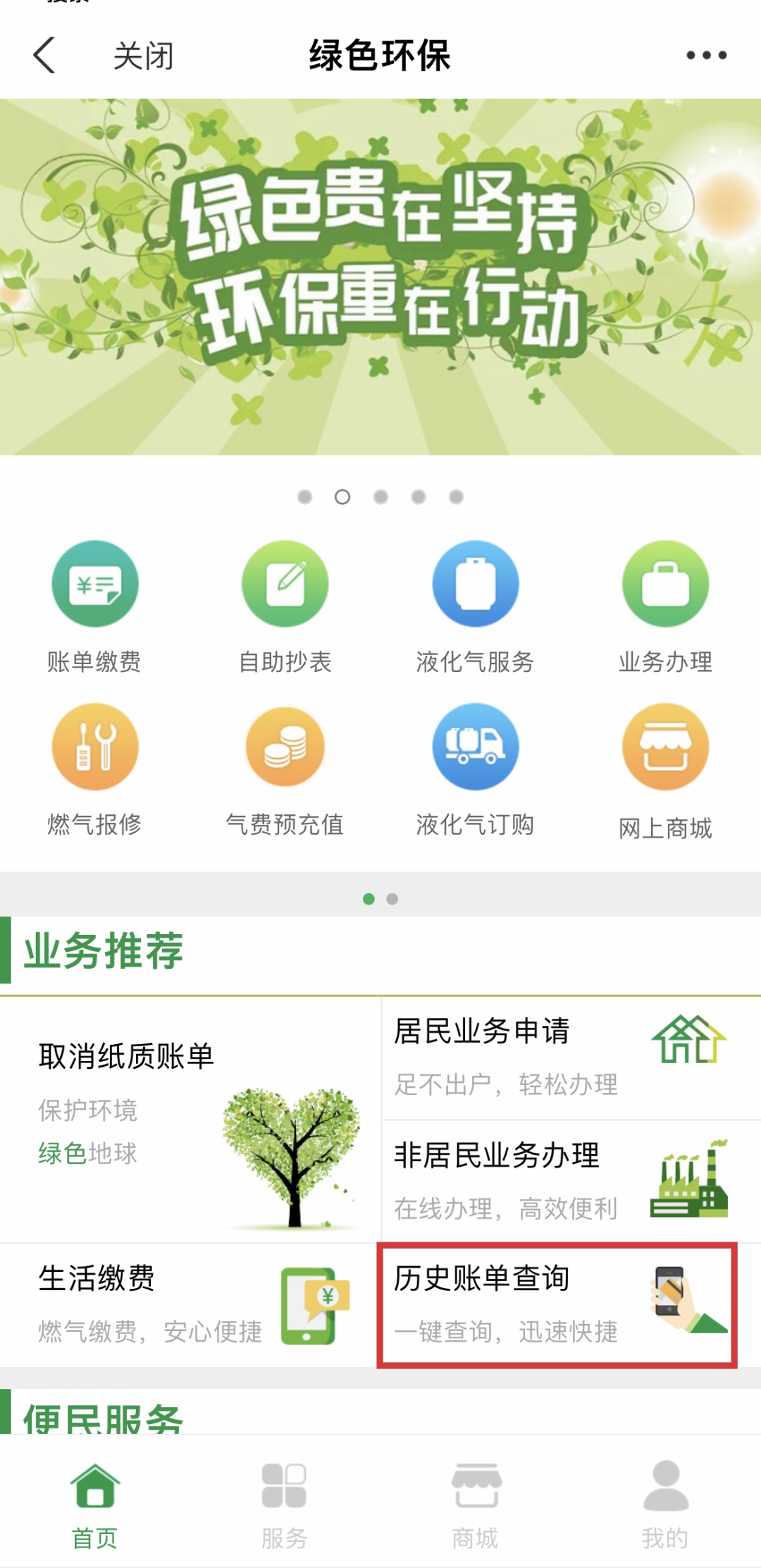 查询路径1:上海燃气微客服-历史账单查询-去支付;