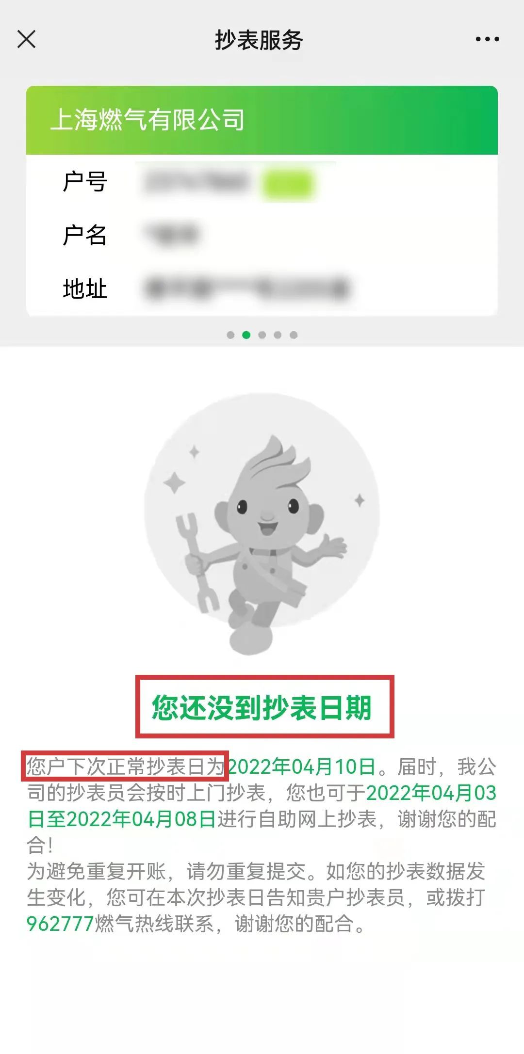 由于每户抄表计划不同,“自助抄表”有一定时间期限,因此您需要了解自己的抄表时间段。