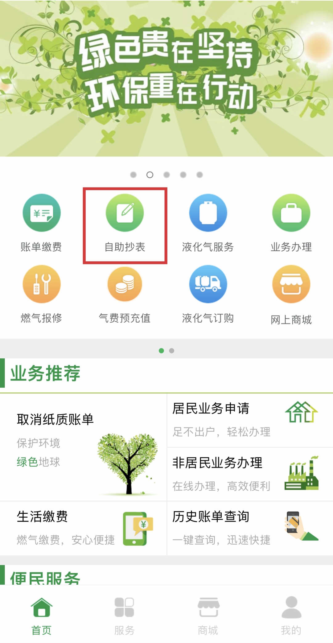 “自助抄表”指您进入上海燃气微客服平台或是支付宝上海燃气生活号“自助抄表”的功能模块,在线完成燃气计数的上传。具体操作步骤如下: