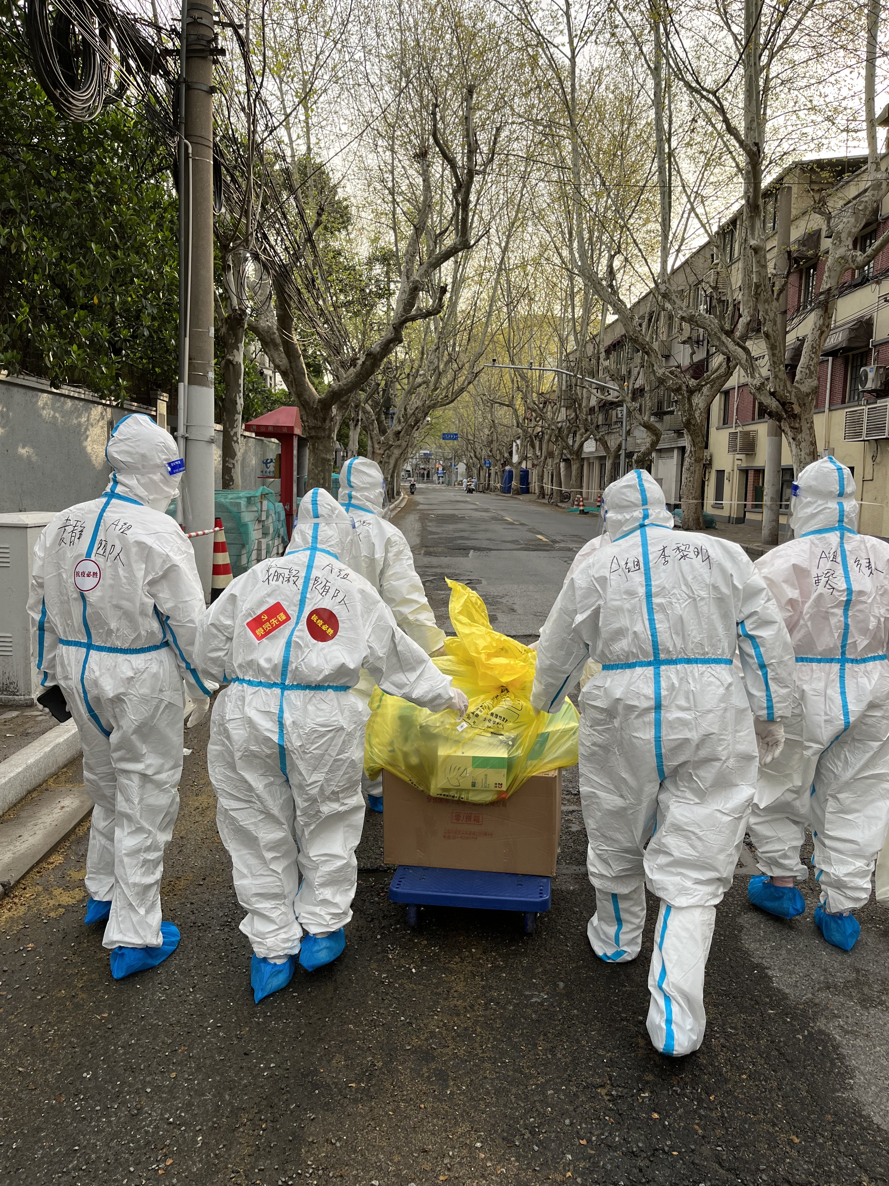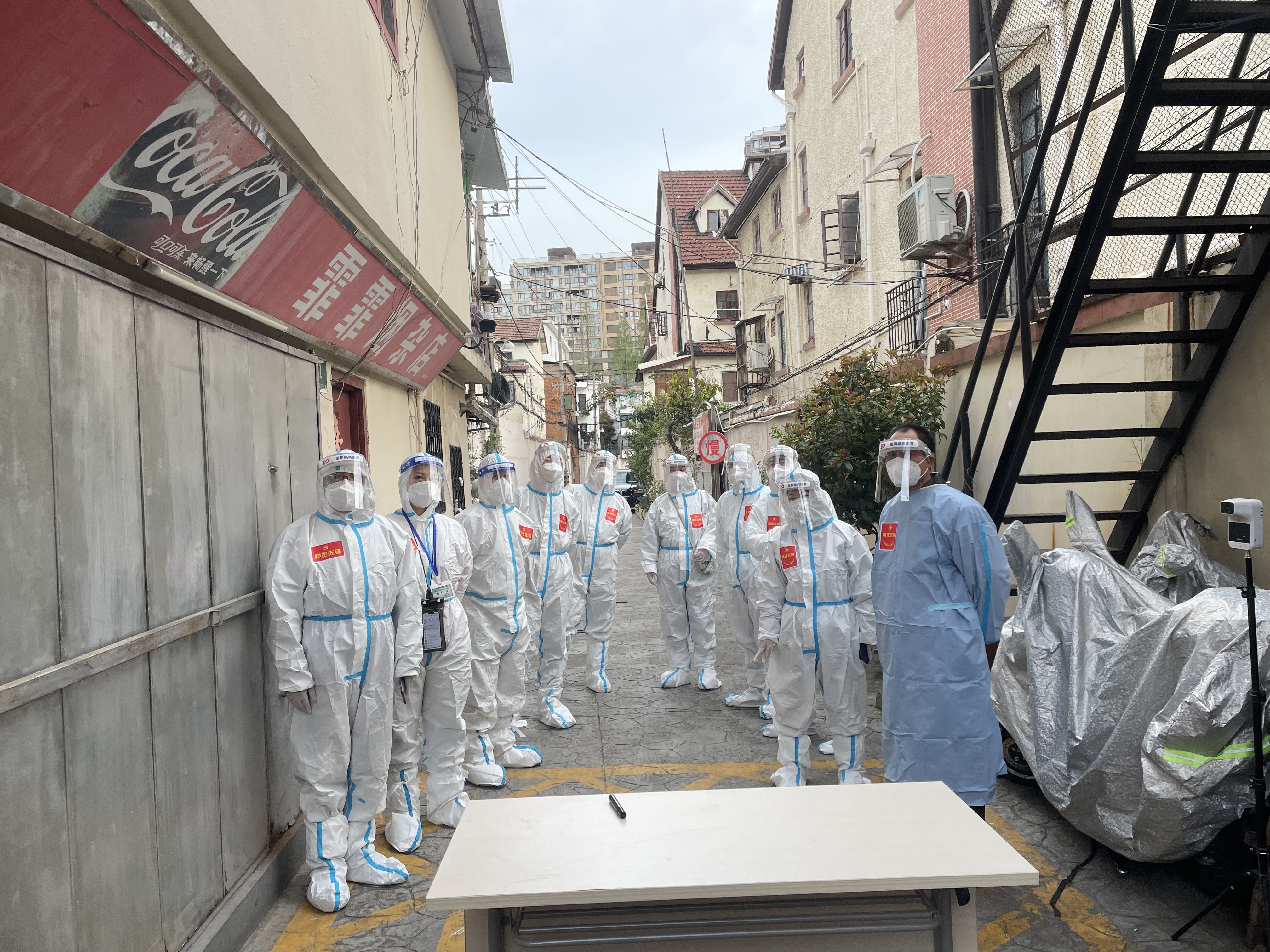 4月1日清晨的第一缕阳光里, “大白”“小蓝”们已经在社区各个点位上准备就绪。