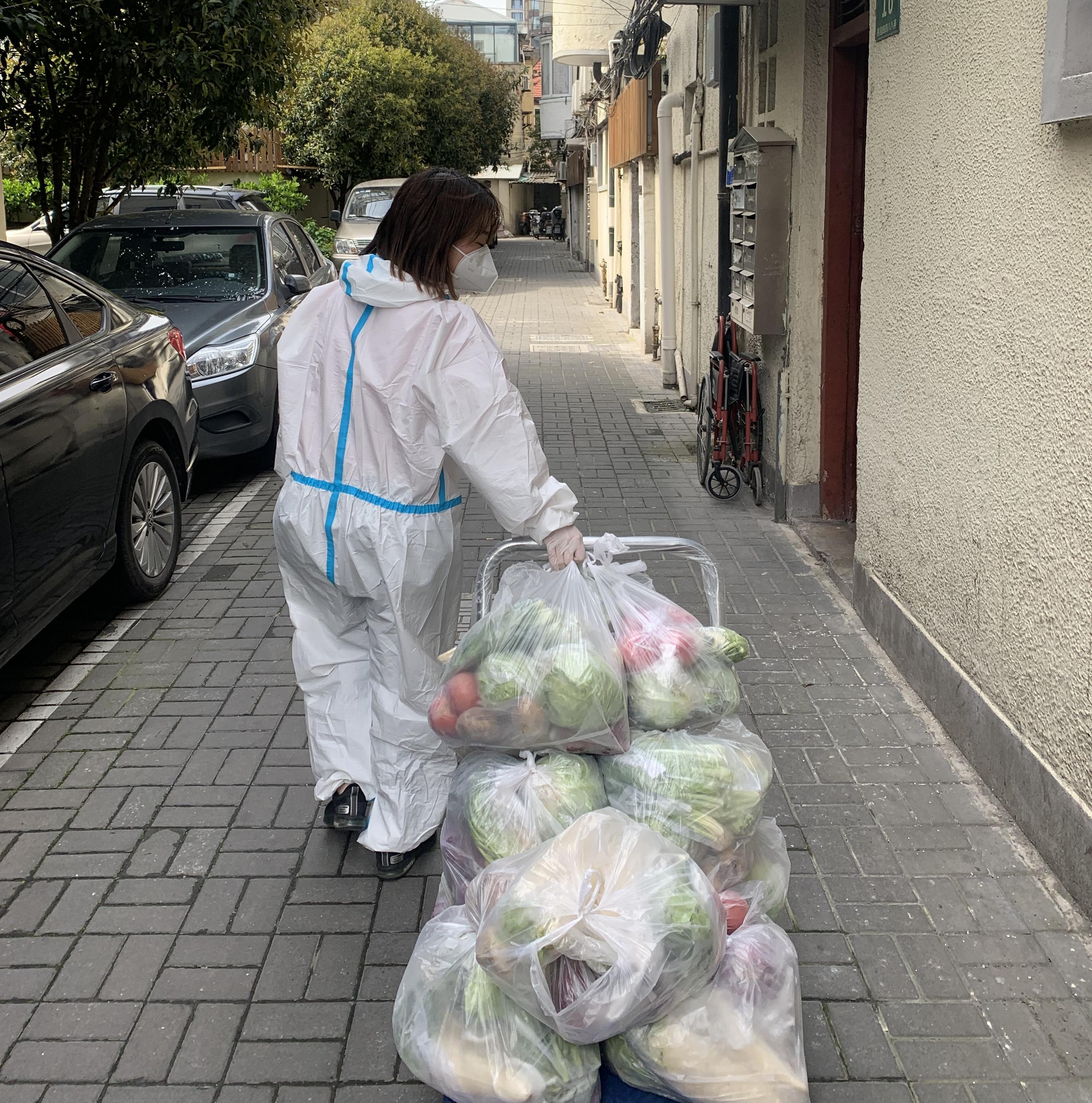 长期卧床、行动不便的老人无法下楼,他们就和医护人员一起入户完成采样。足不出户,柴米油盐的日子还要继续。又是他们挨家挨户为居民送菜,为大家的日常生活物资保障“加点油”。