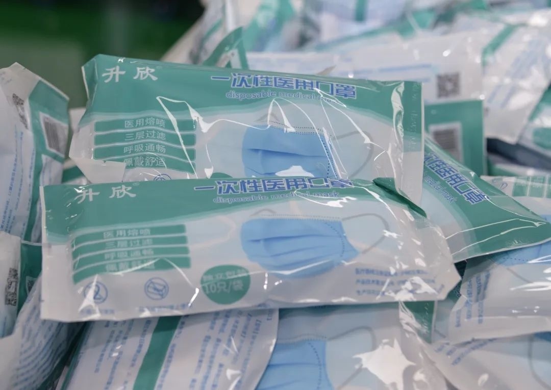 在升欣上海纺织品科技有限公司的无尘车间里,工人们全副武装,一个个刚下线的口罩被源源不断地装箱。为了确保产量,企业同时开了10条生产线,早班工人从早上7点半,持续生产到下午6点半,再由夜班工人接班,保证24小时产线不停。