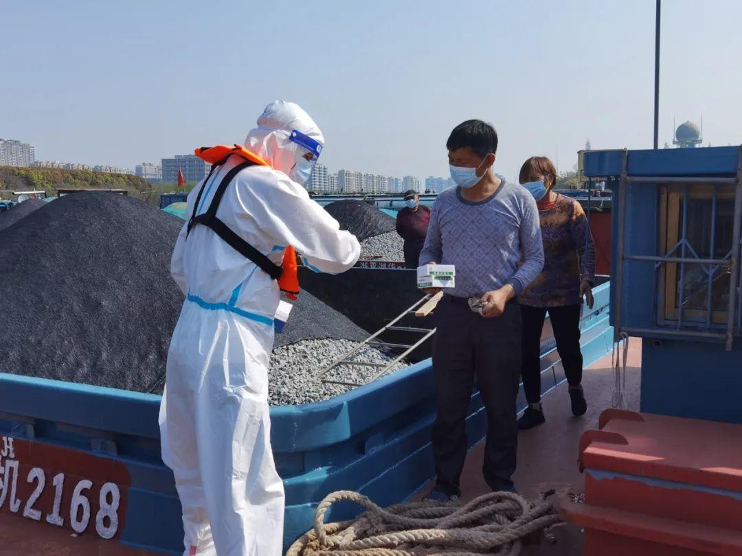 为了守牢青浦水上交通疫情管控防线,区交通委经过前期排摸,对辖区滞留靠泊每一艘船舶进行船上人员信息登记,并创建船员微信工作群,针对船员日常生活物资缺乏的情况,工作人员多渠道寻找物资,第一时间把联系了解到的具体情况告知船民,并承担起“快递小哥”的身份,为物资打通配送的最后“一百米”,全力保障船员的日常生活,体现水上交通的“人情味”。