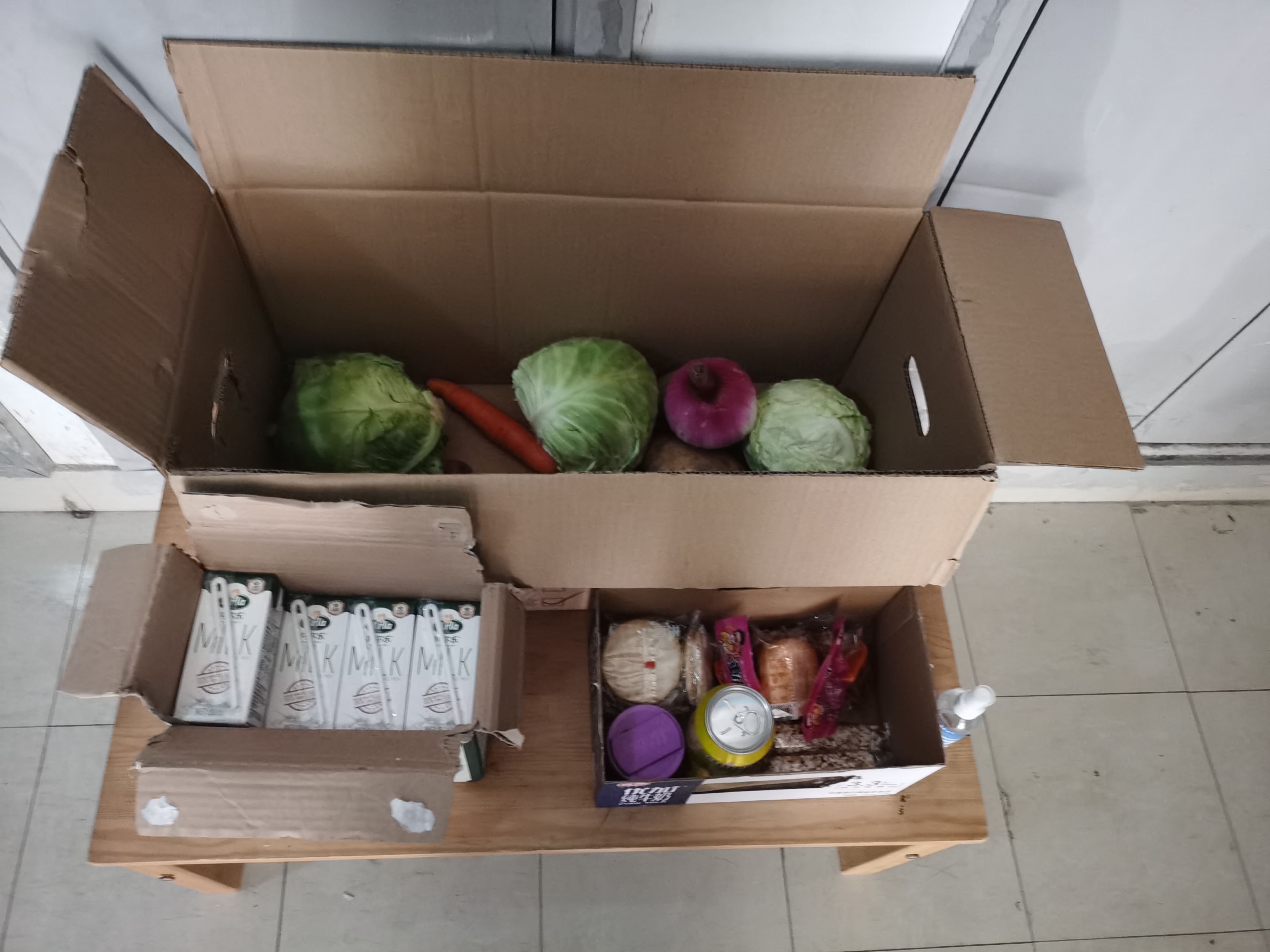令刘媛没有想到的是,大家在领取自己所需的同时,也不忘给塑料框里添加食物,就这样,香肠、柠檬、牛奶、饮料也陆续出现在了塑料框里。