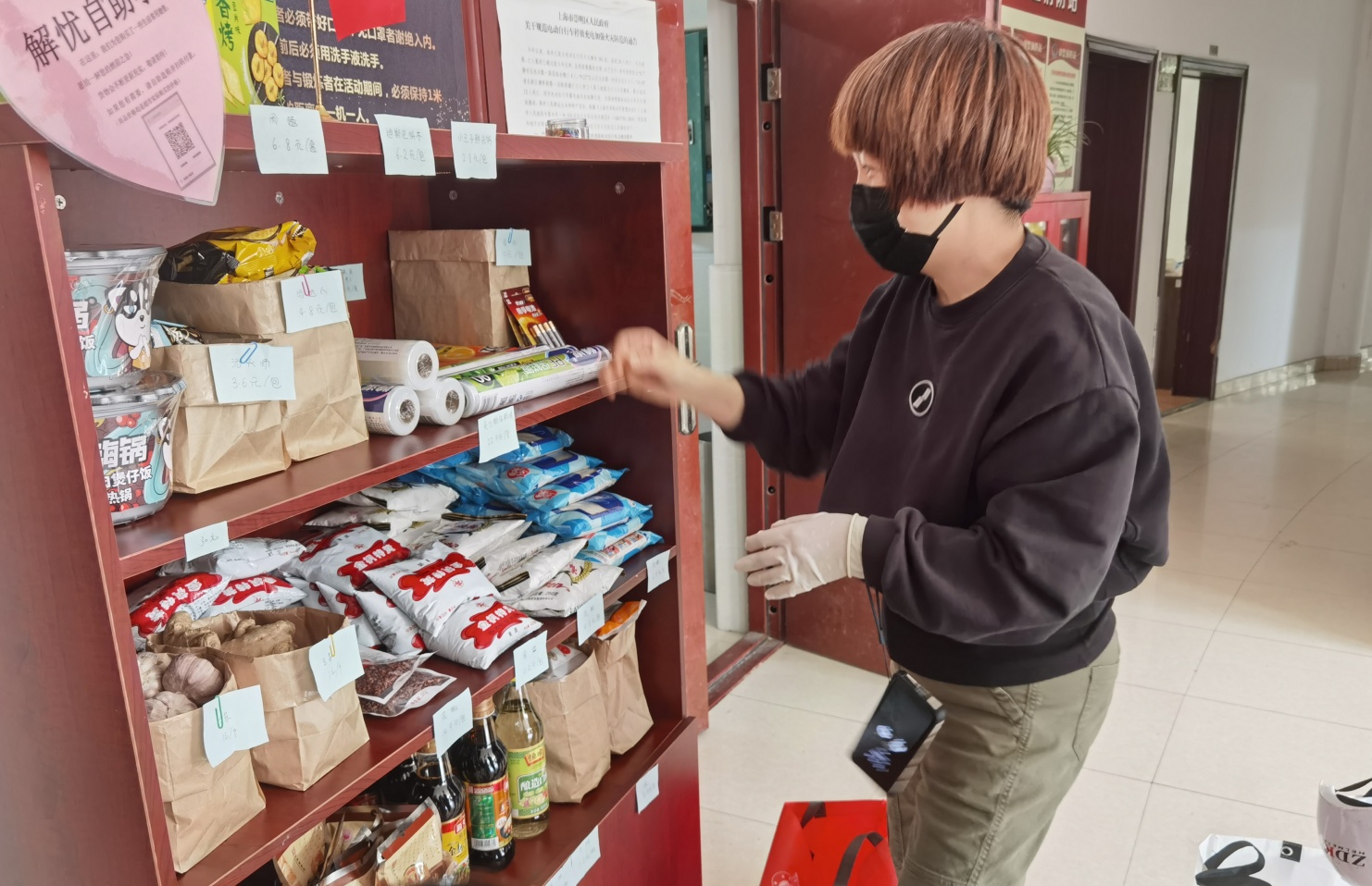 据介绍,“解忧自助小铺”是由江海名都临时党支部自发打造的。考虑到这次长时间封控状态下,居民面临的生活难题增多,反映比较多的是居民存在的物资匮乏问题,毕竟依靠社区居委力量有限。小区临时党支部党员志愿者们发挥自身力量,想点子出主意,通过开设这个“解忧自助小铺”,为居民解决燃眉之急。