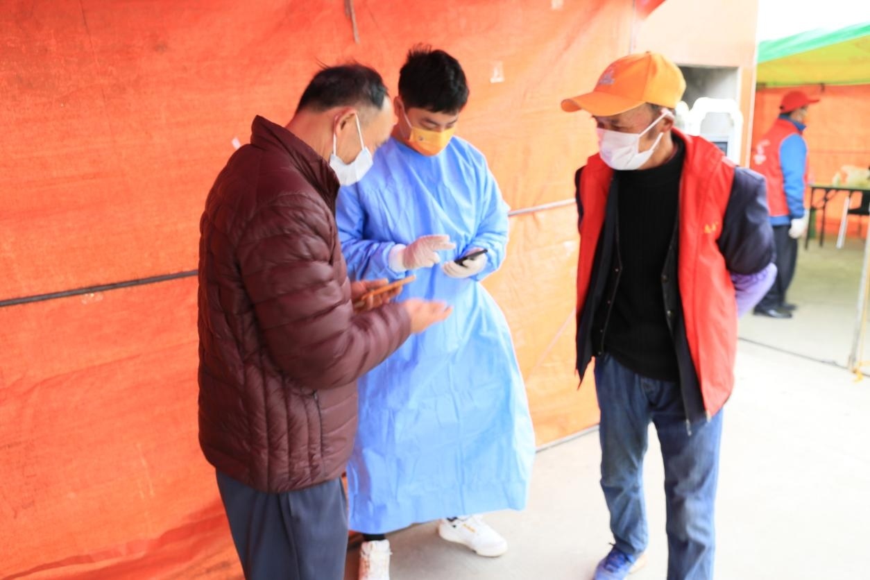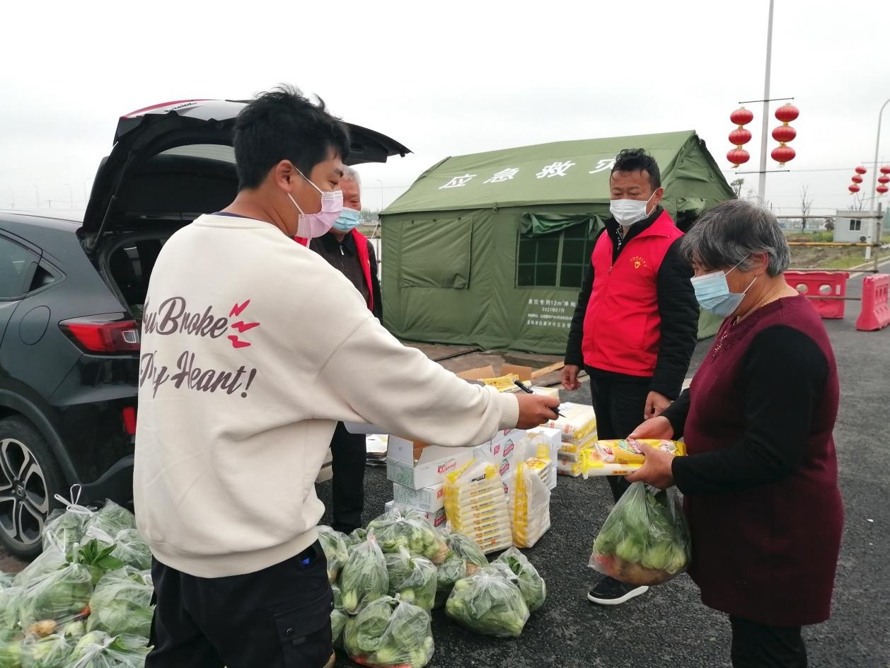 除了日常的核酸采样、抗原检测,郁炜还负责平移点内大大小小的事务。装运、发放政府下拨的物资少不了他,生活物资采购更是少不了他。村里大多数老人没有智能手机或者不会操作智能手机,在生活物资保供方面,他一方面让辖区内巡逻的志愿者将老人们的需求报给他或者直接电话联系他,另一方面将老人的子女加入村里的物资采购群进行订购,到货后再集中配送。