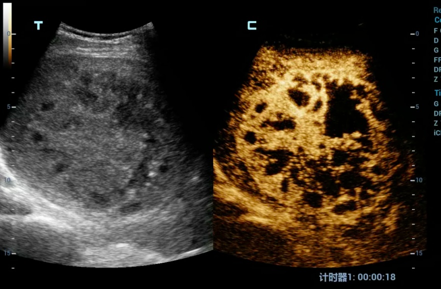 术前对病灶进行充分评估,并做了超声造影,肝脓肿较成人拳头略大,內见较多的分隔。