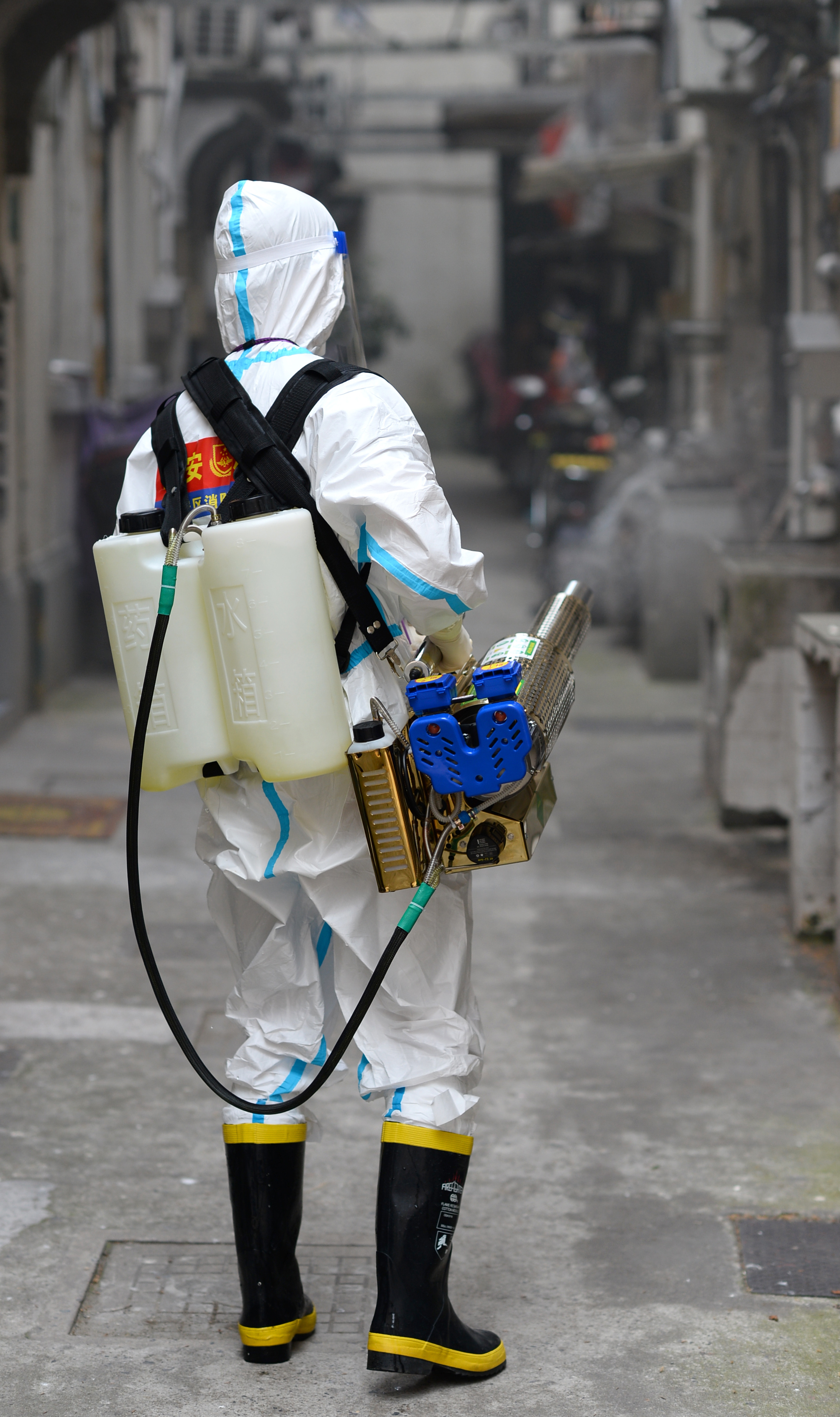 由于是老式小区,楼道口、通道的环境尽管狭小,但消防员不放过每个死角。来自恒丰消防站、有着12年消防救援经历的江亚正在对一处木质楼梯进行消杀,从台阶到楼梯角落,严格又细致,“虽然每次消杀的地方不同,但是要求都是一样的,一定要仔细。每天的工作量都很大,几乎忙得停不下来,但是我觉得所做的工作是值得的。”