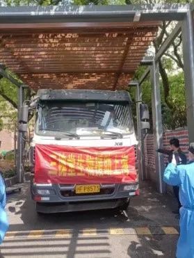 4月16日,货车从上海出发,历经重重关卡到达如皋市白蒲镇文著社区对接物资,在经历10多个小时的长途跋涉后,两辆装满10吨爱心大米的货车顺利抵达疫情重灾区的田林街道钦州花苑、田林新苑、宜苑等5个小区。货车抵达后,物业公司立刻组织人员对车辆及货物进行了全方位消杀。