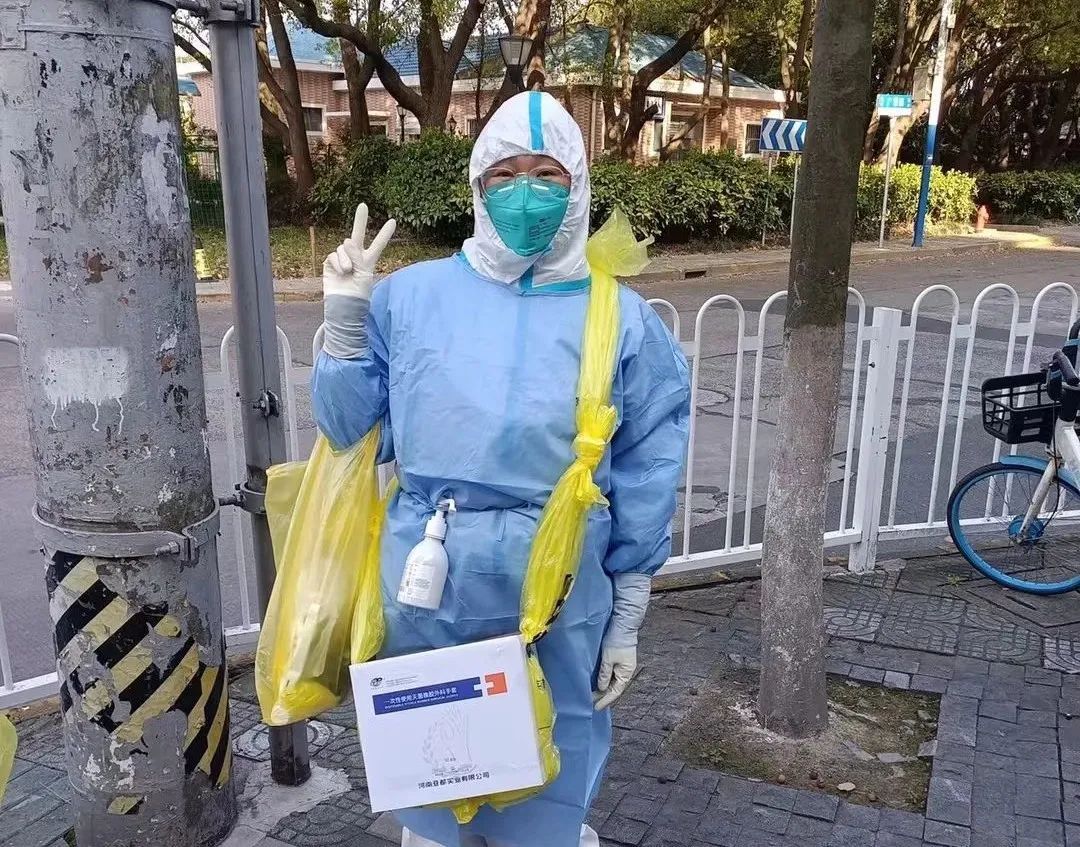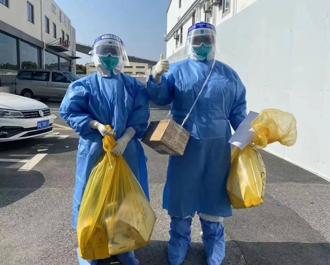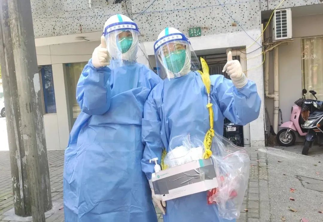 浦锦社区卫生服务中心心灵手巧的物资组手工缝制了扫楼包。第一天用订书机,第二天穿起了引线,第三天甚至配备了小型缝纫机,不断升级装备,以保障前线的每一个扫楼队员。
